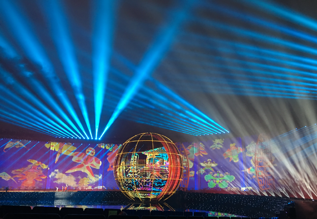 ? ? ? ?為迎接各方來賓,峰會于2018年6月9日夜間在青島奧帆中心舉辦了一場名為《有朋自遠方來》的燈光焰火藝術表演。浩洋電子作為國際領先的專業(yè)燈光設備供應商,為此次燈光焰火藝術表演提供了主要的專業(yè)優(yōu)質燈光服務,129套“浩洋智造”科技創(chuàng)新型飛燈系統攜LED染色燈OK190Z-RII、切割燈V3000P等多款高質量專業(yè)舞臺燈具再現國際級文藝演出舞臺,浩洋燈光用出色的燈光科技表現手段再創(chuàng)科技與文化的完美融合,穩(wěn)定高效地為高清電視轉播提供了全方位有力的支持。