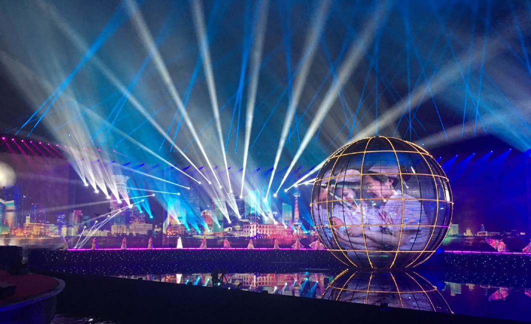 ? ? ? 特別在本次燈光焰火演出中,浩洋電子的飛燈系統依然成為了一大亮點,與眾不同的是,浩洋飛燈系統打破了“燈位不動,只有光在運動”的限制,讓電腦燈本身也運動起來,自由翱翔,實現從“光的運動”到“運動的光”著巨大的轉變。浩洋飛燈系統的研發(fā)是與2016年9月杭州G20峰會文藝演出《最憶是杭州》息息相關,當時的總制作人著名燈光設計沙曉嵐提出“舞蹈演員吊掛著威亞,從外湖飛入西湖演出舞臺”的設想,與合作方浩洋電子進行了大量的研發(fā)試驗,但由于西湖的地理位置限制,這個創(chuàng)意未能實現,研發(fā)的成果也保留了下來,最終在2017年的央視春晚桂林分會場實現了浩洋飛燈系統的全球首秀。在本次上海合作組織青島峰會燈光焰火藝術表演中,浩洋飛燈系統以創(chuàng)新科技化燈光震撼獻力國家重要演出活動,勾勒出一幅科技燈光與文化相融合的視覺美景。