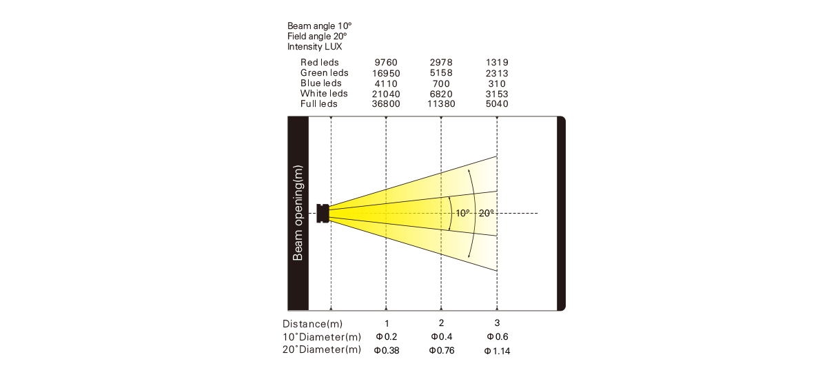 5種通道模式:4/5/6/8/36個國際標準DMX512通道