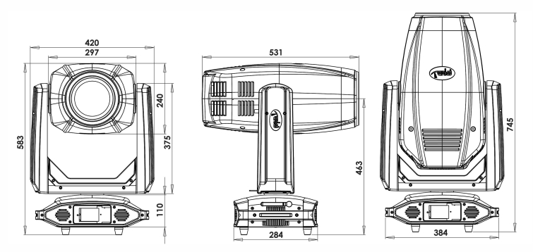 可從控臺完成更改DMX地址碼,機器重設(shè)等功能