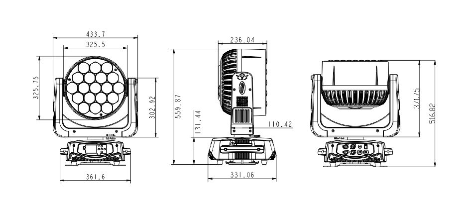 光源:19顆25W大功率RGBWA+薄荷色+UV 7合1 LED