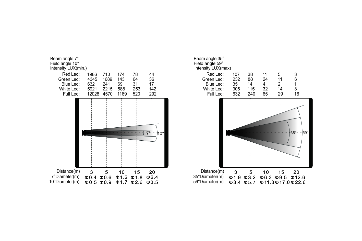 變焦范圍:光束角:7°-35°,光斑角:10°-59°